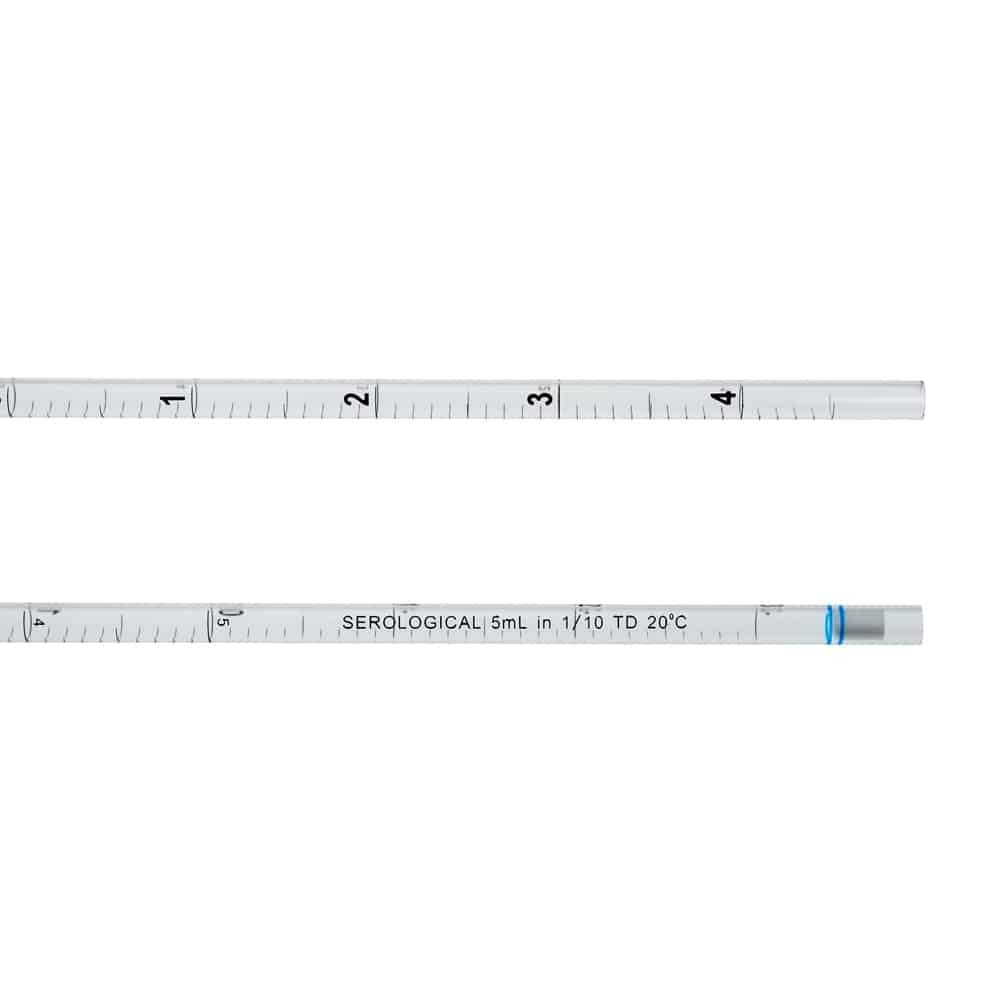 CellTreat (229243) Serological Pipet, 5mL, Open End Pipet, Polystyrene, Bulk Packed in Bags (not individually wrapped). Dark, clear graduations. Premium plug material. Sterile, 25 Bulk Packed/Bag, 500/CS.