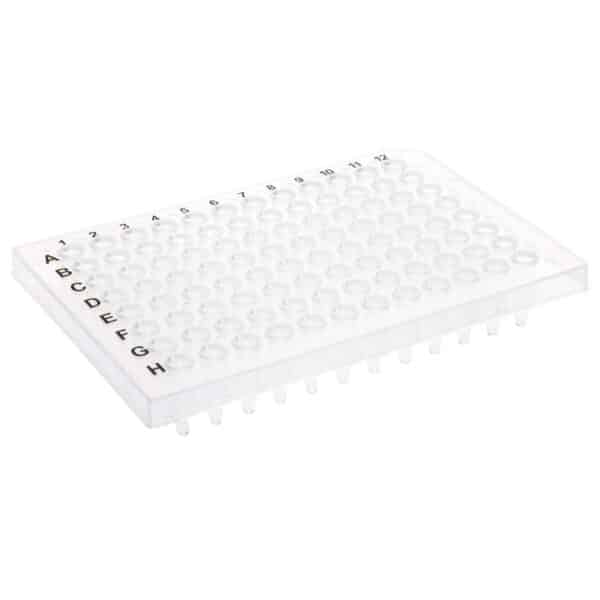 CellTreat (229513) 96-well PCR Plate with 0.2mL wells and a half skirt is clear and boldly printed with alphanumeric markings for easy identification of individual wells.