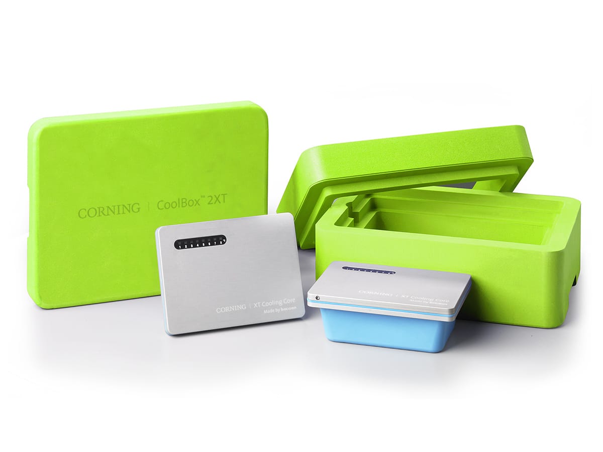 Corning CoolBox 2XT systems are bench top cooling workstations that accomodate two CoolRacks and provide sample cooling or freezing without ice, electricity or batteries. CoolBox systems are versatile and accommodate a variety of sample formats and temperatures. The modular design enables the use of CoolRack® and CoolSink® thermo-conductive sample modules to hold microfuge tubes, cryogenic vials, PCR tubes or plates, assay plates and more.