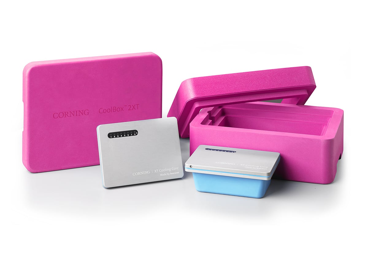 Corning CoolBox 2XT systems are bench top cooling workstations that accomodate two CoolRacks and provide sample cooling or freezing without ice, electricity or batteries. CoolBox systems are versatile and accommodate a variety of sample formats and temperatures. The modular design enables the use of CoolRack® and CoolSink® thermo-conductive sample modules to hold microfuge tubes, cryogenic vials, PCR tubes or plates, assay plates and more.