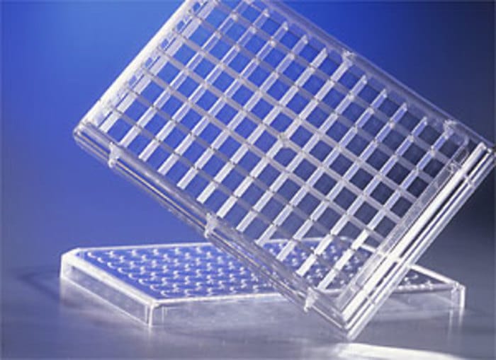 Open plate for cell growth and feeding stage, sterile, not treated (for cell attachment) When used with HTS Transwell®-96 unit, the tray allows for convenient multi-channel pipet access (manual or automated) along the A1- A8 side