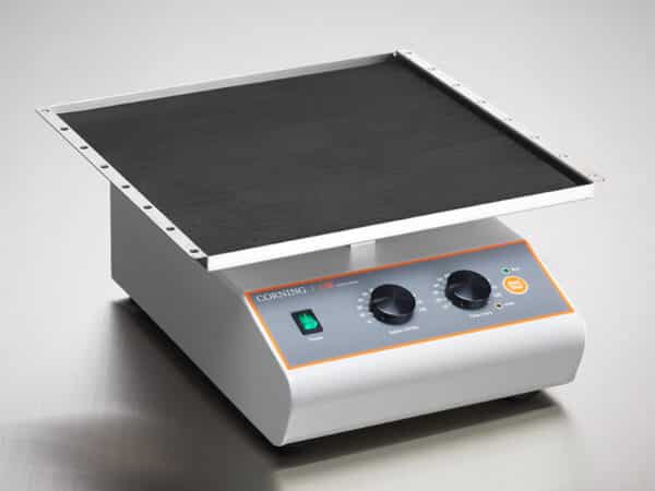 The speed of the Corning Platform Rocker can be adjusted from 2 to 60 rpm and the timer can be set for up to 2 hours or for continuous operation. The unit is safe to use in temperature controlled environments up to 70°C and is available in single or high capacity double platform configurations. Both of these rugged models come with a 5-year warranty.