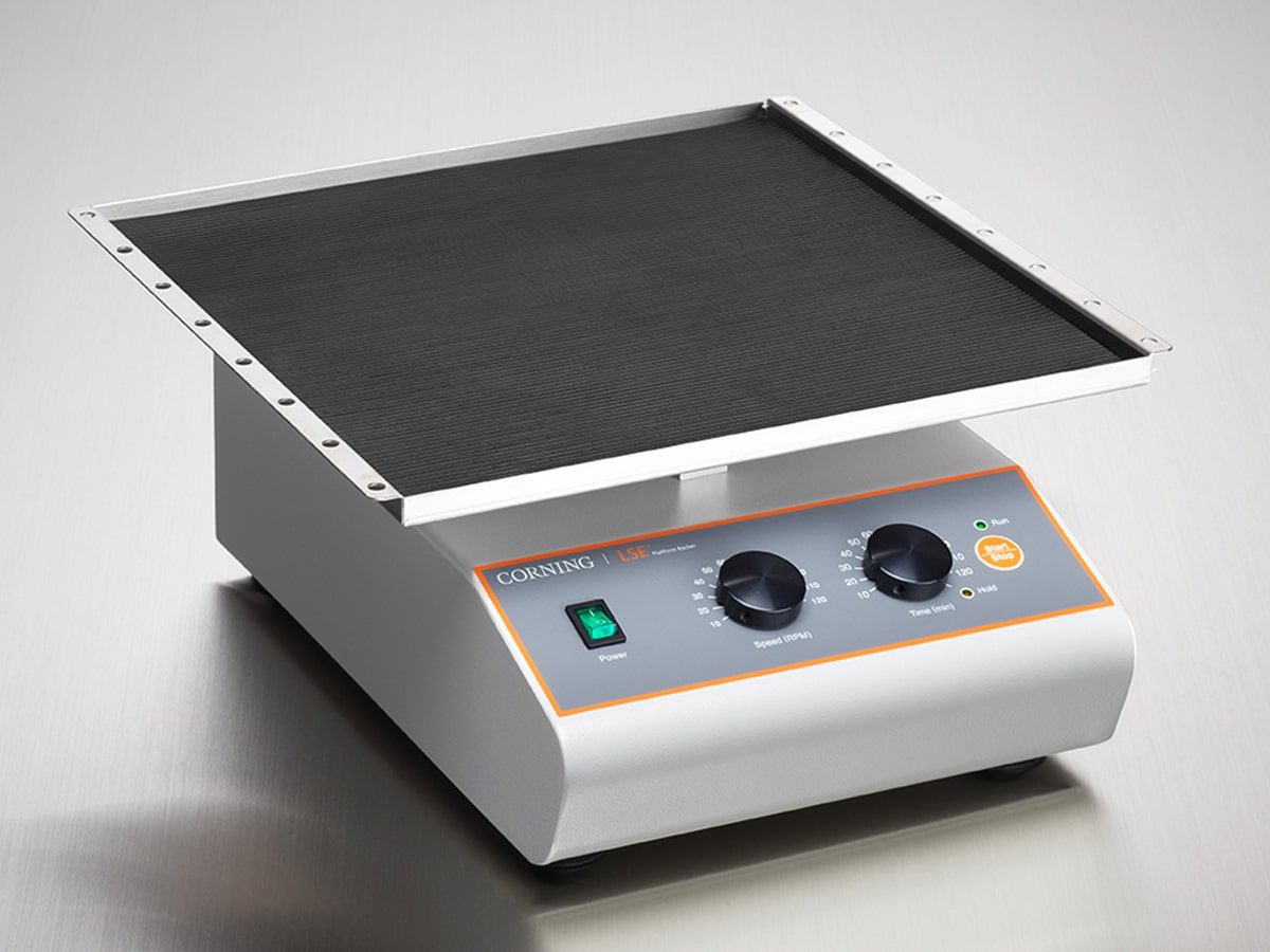 The Corning® LSE™ Platform Rocker is a compact yet high capacity rocker that is ideal for western blotting and general mixing applications. The adjustable rocking speed and fixed 7 degree tilt makes it optimal for staining fragile gels, as well as the more intensive action necessary for washing blots.