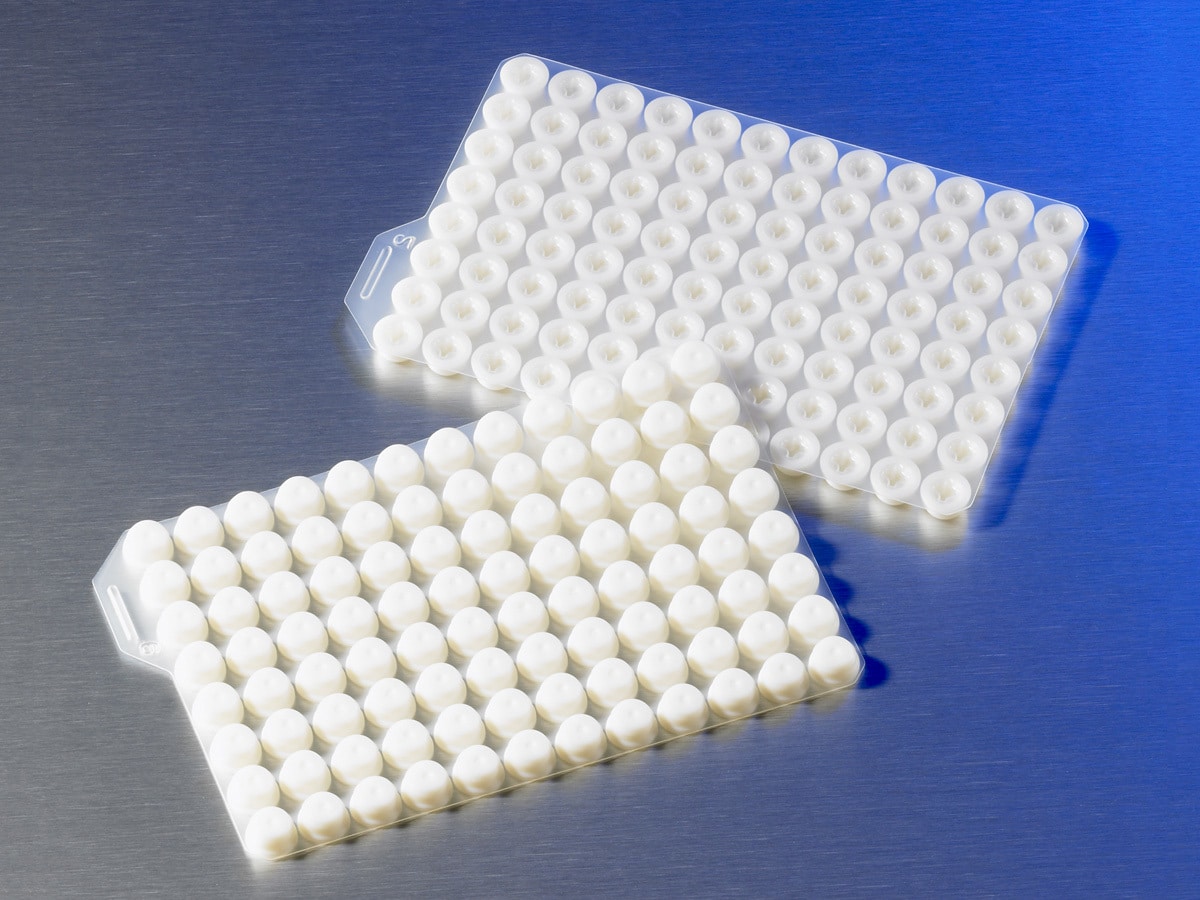 Corning Thermoplastic Elastomer (TPE) 96 Storage Tube Septum Cap on Mat