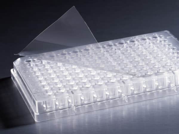- Pressure-sensitive tape ensures tight sealing to minimize evaporation and enables oil-free operation when used with thermal cyclers with heated lids