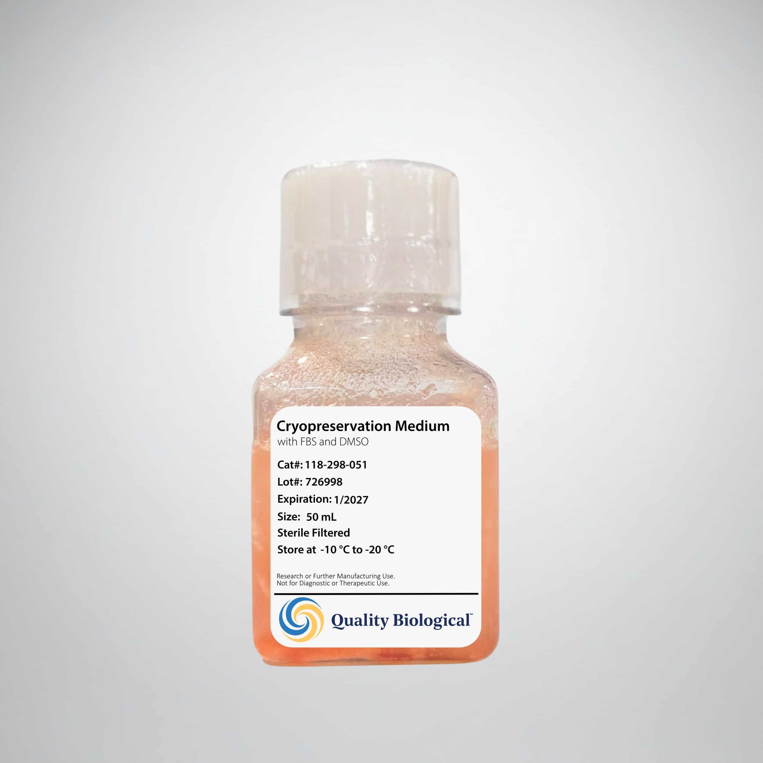 Cryopreservation Medium with FBS and DMSO is a ready-to-use medium for the preservation of cells as seed stock or for future investigative study. Cryopreservation allows you to preserve and protect your cell line stock(s) from over-culturing that can lead to unwanted changes within cellular properties or lead to senescence.