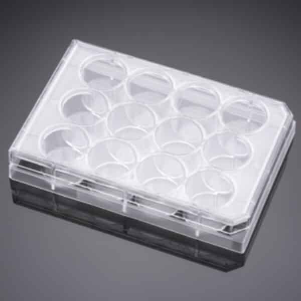 Falcon® 12-well Clear Multiwell Plate is comprised of TC-treated polystyrene. Flat bottom, with low-evaporation lid, individually wrapped, sterile, 50/case. Unique labyrinth lid, condensation rings, and deep-well design control contamination, reduce evaporation, and minimize edge effects.Reliable vacuum-gas plasma tissue culture treatment provides well-to-well and plate-to-plate consistency.