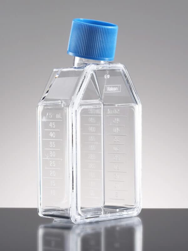 Falcon® cell culture flasks with vacuum-gas plasma tissue culture treatment provides consistent cell attachment, spreading, and growth/