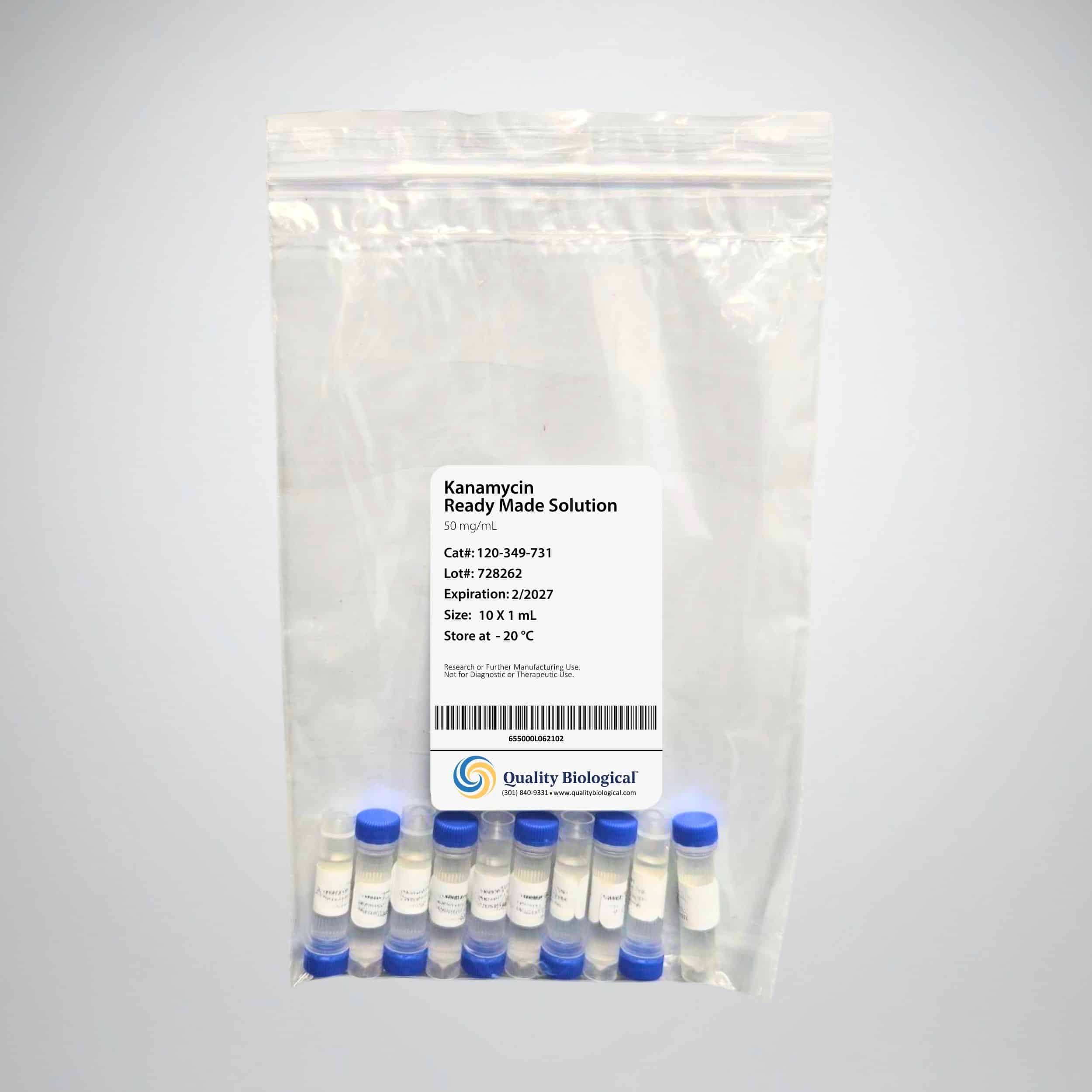 Kanamycin Ready-Made Solution is prepared from USP grade kanamycin sulfate salt. Kanamycin sulfate is a water-soluble, broad-spectrum antibiotic obtained from soil bacterium Streptomyces kanamyceticus. It is an aminoglycoside antibiotic effective against Gram-negative and Gram-positive bacteria and mycoplasma. It binds to the 70S ribosomal subunit, inhibits translocation, and elicits miscoding.