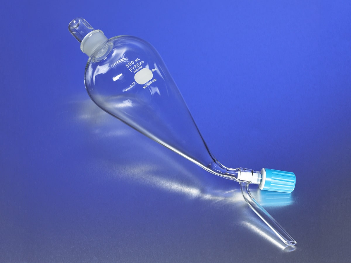 PYREX® 125 mL Squibb Glass Separatory Funnel, Glass Standard Taper Stopper, Rotaflo® Stopcock