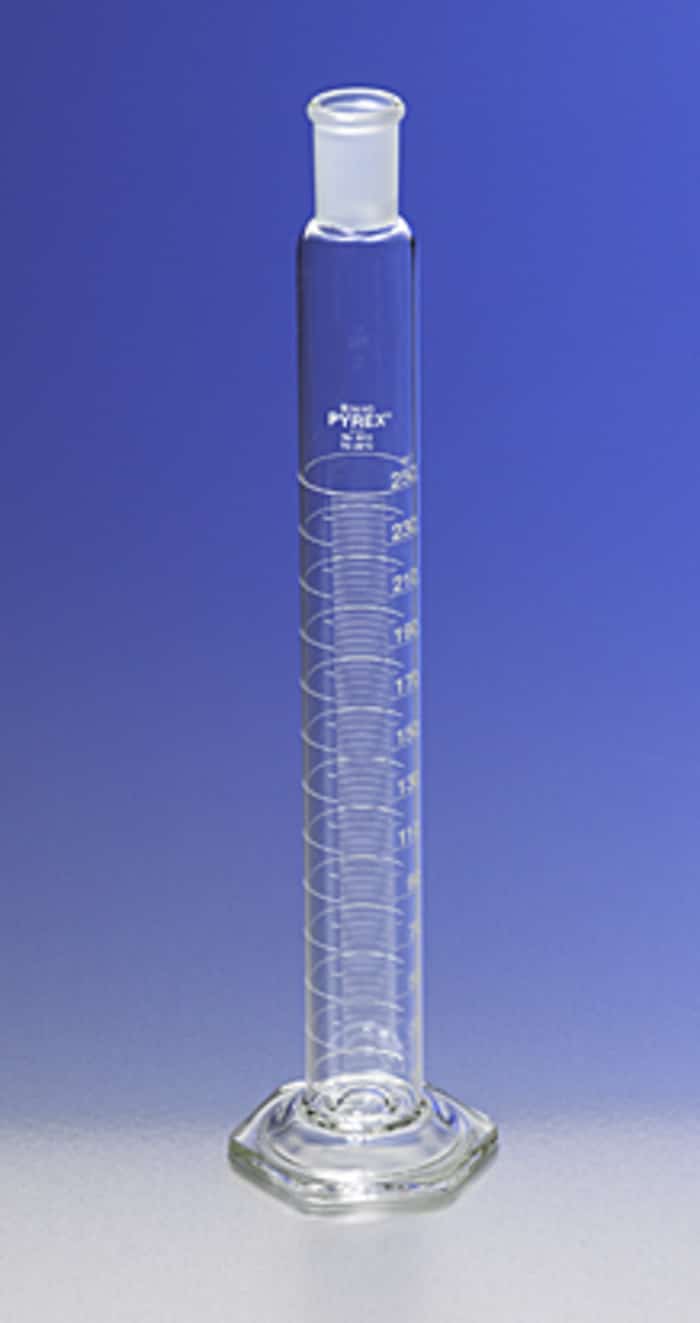 PYREX® 250 mL Single Metric Scale Cylinders, 24/40 Standard Taper Outer Joint, White Graduations, TC