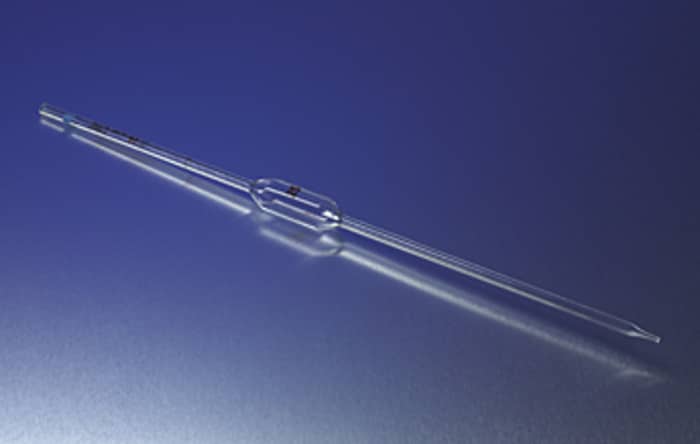These 50 mL PYREX® volumetric pipets are calibrated to Class A tolerances in accordance with ASTM E-542, and ASTM E-969. Each pipet is individually serialized and supplied with a Certificate of Identification and Capacity, traceable to NIST standards. New design allows more complete and efficient drainage. Color-coded markings enameled onto the glass.
