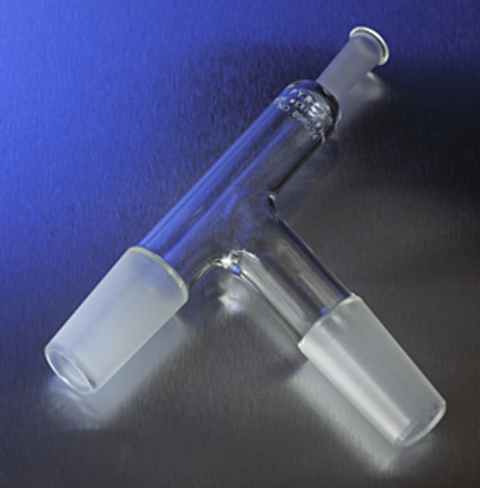 The sidearm on this PYREX® tube adapter is at an angle approximately 75° from the lower joint. The lower end and sidearm are equipped with inner Standard Taper 24/40 joints. The Standard Taper 10/30 outer joint accommodates a thermometer.The sidearm on this PYREX® tube adapter is at an angle approximately 75° from the lower joint. The lower end and sidearm are equipped with inner Standard Taper 24/40 joints. The Standard Taper 10/30 outer joint accommodates a thermometer.