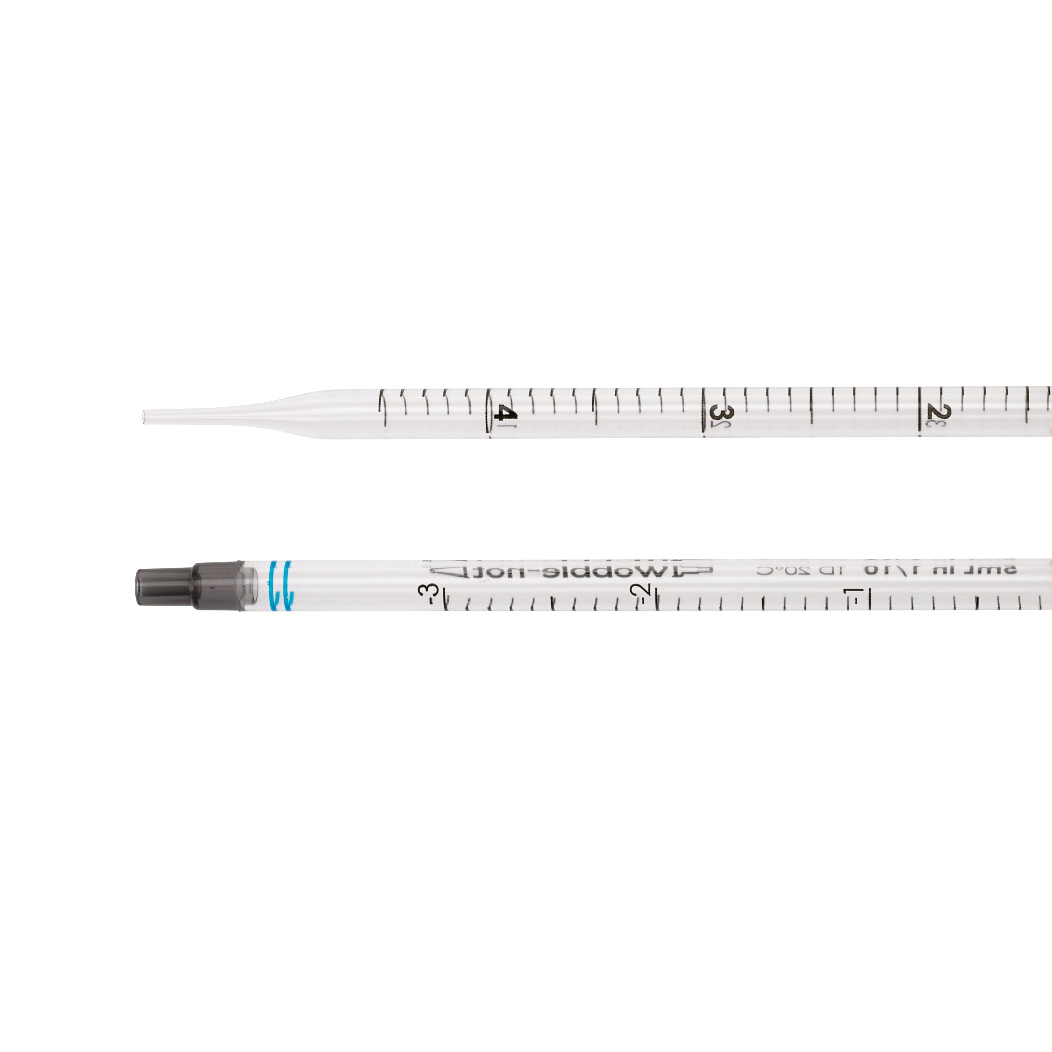 Wobble-not™ serological pipets have a patented innovative 2-tier step design at the plug end vs. traditional pipets that have a straight cylindrical-shaped plug end, requiring less insertion force